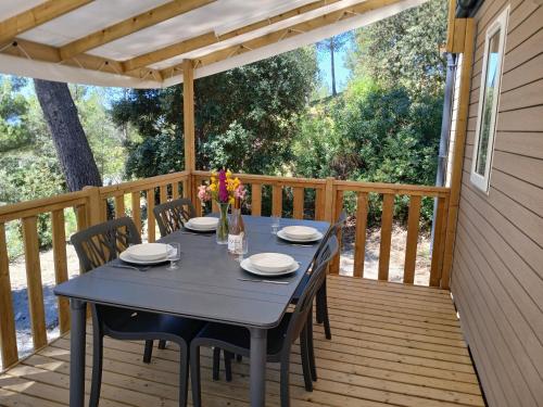 ![]() ![]() ![]() ![]() This air-conditioned mobile home includes 1 living room, 2 separate bedrooms and 1 bathroom with a shower. In the well-fitted kitchen, guests will find a refrigerator, kitchenware, a microwave and a toaster. The mobile home offers a tea and coffee maker, a seating area, a dining area as well as a terrace with garden views. The unit has 3 beds. |