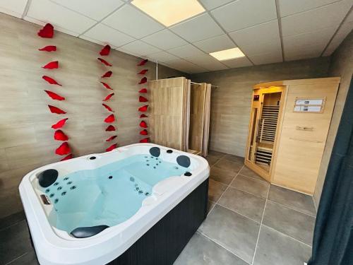 L’hébergement Les Nuits du Cotentin vous accueille à respectivement 4,3 km et 30 km de ces lieux d’intérêt : Fort de Tatihou et La Cité de la Mer. Il possède une connexion Wi-Fi gratuite et un jardin. Cet appartement est à respectivement 36 km et 13 km de : Parc naturel régional des Marais du Cotentin et du Bessin et Golf de la Presqu'île du Cotentin. Cet appartement compte 1 chambre, un salon comportant une télévision à écran plat, une kitchenette entièrement équipée et 1 salle de bains. L’espace bien-être comporte un sauna et un bain à remous. L'aéroport le plus proche (Aéroport de Caen-Carpiquet) est à 103 km. |