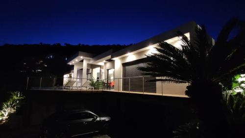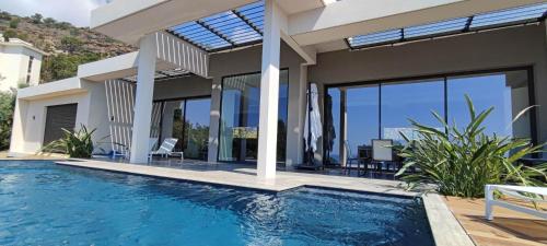 Villa - Vue sur Mer          Cette villa possède une piscine avec vue. Cette villa climatisée comprend une entrée privée, 1 salon, 4 chambres séparées, ainsi que 4 salles de bains avec une douche à l'italienne et une baignoire. La cuisine est équipée de plaques de cuisson, d’un réfrigérateur, d’un lave-vaisselle et d’ustensiles. Cette villa est également dotée d’un barbecue. Cette villa spacieuse et insonorisée dispose d'un lave-linge, d'un plateau/bouilloire et d'une terrasse avec vue sur la mer. Ce logement comprend 5 lits. | ||