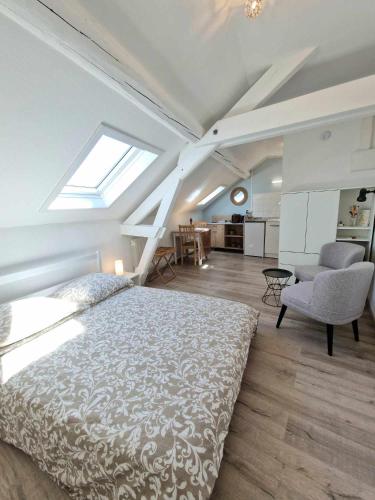 L’hébergement Chez Clovis - proche gare centre et arena vous accueille à Reims, à respectivement 900 mètres et 1,2 km de ces lieux d’intérêt : Les Hautes Promenades et Gare de Reims. Il met à votre disposition une connexion Wi-Fi gratuite et offre une vue sur la ville. Cet appartement est à respectivement 1,7 km et 1,7 km de : Cathédrale Notre-Dame et Église Saint-Jacques. Cet appartement comporte 1 chambre, une kitchenette avec un réfrigérateur et un micro-ondes, ainsi que 1 salle de bains avec une douche et un sèche-cheveux. Des serviettes et du linge de lit sont à votre disposition. Vous séjournerez à proximité de ces lieux d’intérêt : Jardin Pierre Schneiter, Fontaine Subé et Opéra de Reims. L'aéroport le plus proche (Aéroport Châlons-Vatry) est à 74 km. |