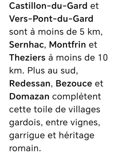 L’hébergement Maison de village à deux pas de la rivière vous accueille à respectivement 22 km et 23 km de ces lieux d’intérêt : Gare d'Avignon-Centre et Palais des Papes d'Avignon. Il propose une connexion Wi-Fi gratuite et une terrasse. Cette maison de vacances est à respectivement 24 km et 32 km de : Gare TGV d'Avignon et Parc des expositions d'Avignon. Cette maison de vacances avec climatisation se compose de 1 chambre, d'un salon, d'une cuisine entièrement équipée avec un réfrigérateur et une machine à café, ainsi que de 1 salle de bains avec une douche et des articles de toilette gratuits. Des serviettes et du linge de lit sont disponibles. Vous séjournerez à respectivement 32 km et 37 km de ces lieux d’intérêt : Parc des expositions de Nîmes et Arènes d'Arles. |