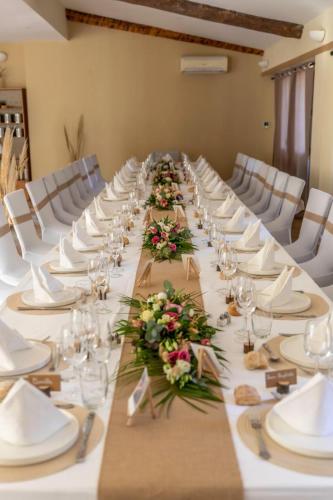 Situé à Rians, l’hébergement Bastide provençale au cœur de la Provence Verte offre une vue sur la montagne. Il comprend une piscine extérieure ouverte en saison, un jardin, un salon commun et une connexion Wi-Fi gratuite. Cette villa possède un parking privé gratuit et se trouve dans une région où vous pourrez pratiquer des activités telles que la randonnée et le billard. Cette villa compte 9 chambres, une cuisine avec un réfrigérateur et un lave-vaisselle, une télévision à écran plat, un coin salon, ainsi que 5 salles de bains possédant une douche. Des serviettes et du linge de lit sont mis à votre disposition. L’établissement Bastide provençale au cœur de la Provence Verte propose une terrasse et une aire de jeux pour enfants. Vous séjournerez à 19 km de ce lieu d’intérêt : Agence ITER de Cadarache. L'aéroport le plus proche (Aéroport de Marseille Provence) est à 64 km. Un service de navette aéroport payant peut être assuré par l’établissement. |