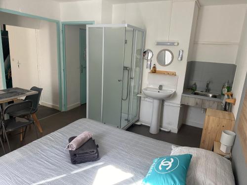 Appartement 2 Chambres      Featuring a private entrance, this air-conditioned apartment consists of 2 bedrooms and 1 bathroom with a shower. Meals can be prepared in the kitchenette, which is equipped with a stovetop, a refrigerator and kitchenware. The apartment provides a coffee machine, a dining area, a wardrobe, a flat-screen TV, as well as an inner courtyard view. The unit offers 2 beds. | ||