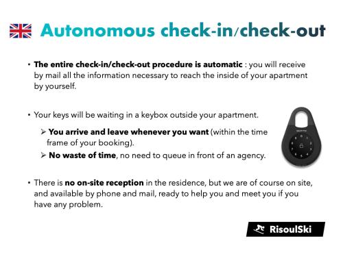 Informations importantes | Les enterrements de vie de célibataire et autres fêtes de ce type sont interdits dans cet établissement. Veuillez informer l'établissement RisoulSki Antarès - Piscine et Sauna à l'avance de l'heure à laquelle vous prévoyez d'arriver. Vous pouvez indiquer cette information dans la rubrique « Demandes spéciales » lors de la réservation ou contacter directement l'établissement. Ses coordonnées figurent sur votre confirmation de réservation. Piscine inaccessible du lun. 01 sept. 2025 au ven. 12 déc. 2025 Le sauna sera inaccessible du lun. 01 sept. 2025 au ven. 12 déc. 2025. Un dépôt de garantie d'un montant de EUR 300 est demandé. Votre hôte le débitera 7 jours avant votre arrivée. Il devra être payé par carte de crédit. Le remboursement devrait être effectué dans les 14 jours qui suivent votre départ. Le dépôt de garantie vous sera entièrement remboursé sur votre carte de crédit, si aucun dommage n'a été constaté par l'établissement. Veuillez noter que les plus grands appartements présentent une superficie de 40/50 m² mais que la plupart sont plus petits (30 m²). Les appartements peuvent accueillir de nombreuses personnes grâce aux lits superposés fournis, mais l’espace sera très limité en cas d’occupation maximale. Il est déconseillé de réserver cet appartement pour une occupation maximale. Vous bénéficierez de tarifs préférentiels sur la location de matériel de ski. De plus amples informations vous seront fournies une fois votre réservation effectuée. Les frais de ménage de fin de séjour, de 60 ou 80 EUR selon le type d’appartement, ne sont pas compris dans le tarif. Vous pourrez choisir de régler ces frais ou de nettoyer l’hébergement vous-même. Même si vous choisissez de payer le forfait ménage, vous devrez nettoyer la cuisine et faire la vaisselle avant votre départ, sortir les poubelles et plier toutes les couvertures et couettes. Veuillez noter que le linge de lit et les serviettes ne sont pas compris dans le tarif de l’hébergement. Vous pourrez apporter les vôtres ou en louer sur place aux tarifs suivants : - le linge de lit pour un lit simple : 11 EUR par personne et par séjour, - le linge de lit pour un lit double : 14 EUR par personne et par séjour, - une grande serviette : 5 EUR par personne et par séjour, - une grande et une petite serviette : 8 EUR par personne et par séjour. Veuillez noter que la piscine et le sauna ne sont accessibles que lorsque la station de ski est ouverte. Veuillez contacter l’office de tourisme de Risoul pour connaître les dates exactes. Les restaurants, supermarchés et commerces de la station de ski sont ouverts uniquement en été et en hiver. En dehors de cette période, il vous est conseillé d’apporter vos propres provisions, car tous les commerces et restaurants sont fermés. Veuillez contacter l’office de tourisme de Risoul pour connaître les dates d’ouverture exactes. Vos clés seront placées dans une boîte à codes. Avant votre arrivée, vous recevrez par e-mail toutes les informations nécessaires pour trouver et ouvrir la boîte à codes. Lors de votre départ, vous devrez simplement remettre les clés dans la boîte à codes. Veuillez noter que vous devrez verser un dépôt de garantie de 300 EUR avant l'enregistrement et des frais de service de 6,78 EUR. Le dépôt de garantie doit être réglé via la plateforme sécurisée Swikly. |