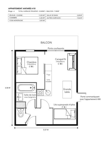 Appartement 408 - 5 à 7 Personnes - 4e Étage - 34 m² - 1 Chambre - Vue sur Rue