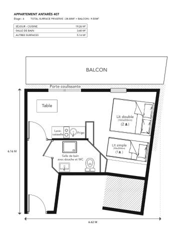Studio 407 - 2 à 3 Personnes - 4e Étage - 28 m² - Vue sur Montagne