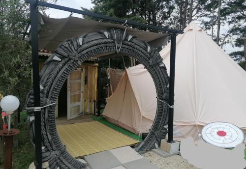 Informations importantes | Les enterrements de vie de célibataire et autres fêtes de ce type sont interdits dans cet établissement. Unusual glamping accommodation, You will sleep in a 28 m2 Berber tent, with the mysterious decor of ancient Egypt A journey through the stargate where you will travel in the past and future of the galaxy LUBERON. A parking space in front of the accommodation, cabin with shower toilet. Viviane and Michel, two people who are passionate about their region, gardening, flea markets, flea markets, reading, extraordinary stories, unusual things, share their passion in their garden decoration, in meeting and sharing with their visitors. ROBION commune du LUBERON, the guest room is in the countryside, 200 meters a roundabout, which distributes , GORDES, L\'ISLE-SUR-LA-SORGUE, ROUSSILLON, BONNIEUX,LACOSTE,MENERBES,CAVAILLON, APT, LOURMARIN,AVIGNON, the D900 that will lead you, to all places to visit in our beautiful region. Pedestrian access protected, to get to the village and has the green trail, bike. Hébergement géré par un particulier |