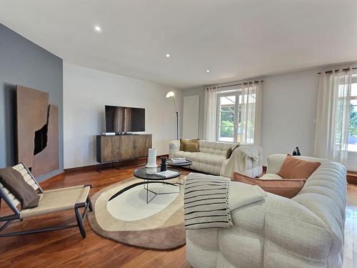 Situé à Romanèche-Thorins, l’hébergement La maison de Vincent de Miss K met à votre disposition une connexion Wi-Fi gratuite et offre une vue sur le jardin. Cet hébergement est installé à 19 km de : Parc des expositions de Mâcon. Il propose une terrasse et un parking privé gratuit. Cet appartement avec climatisation comporte 5 chambres, une télévision à écran plat, ainsi qu’une cuisine avec un réfrigérateur et un lave-vaisselle. Des serviettes et du linge de lit sont disponibles. L'aéroport le plus proche (Aéroport de Lyon - Saint-Exupéry) est à 71 km. |
