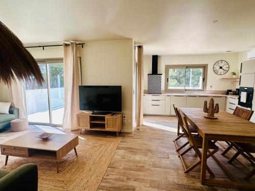 Possédant une piscine extérieure ouverte toute l'année à Roquefort-la-Bédoule, l’établissement Villa Mathaia Cassis possède une connexion Wi-Fi gratuite et un parking privé gratuit. L’établissement propose des hébergements avec vue sur la piscine, une terrasse, un coin salon et une télévision à écran plat. Vous bénéficierez d’une cuisine entièrement équipée avec un réfrigérateur et un lave-vaisselle, ainsi que d’une salle de bains privative avec une douche et un sèche-cheveux. Un four, un micro-ondes et une plaque de cuisson sont également à disposition, de même qu’une machine à café et une bouilloire. Vous séjournerez à respectivement 21 km et 24 km de ces lieux d’intérêt : Orange Vélodrome et Métro La Timone. L'aéroport le plus proche (Aéroport de Marseille Provence) est à 48 km. |