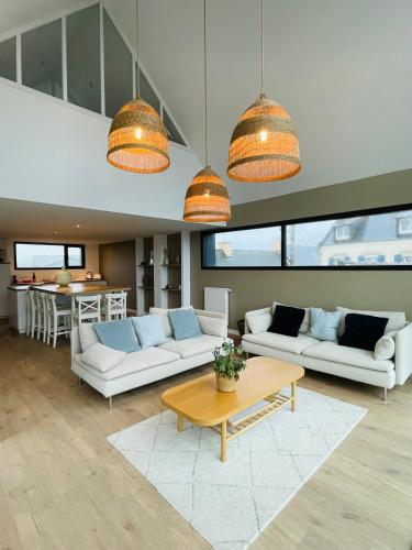 Maison 4 Chambres         Cette maison de vacances comprend une entrée privée, un salon, 4 chambres séparées ainsi que 3 salles de bains avec une baignoire et une douche. La cuisine entièrement équipée est pourvue de plaques de cuisson, d’un réfrigérateur, d’un lave-vaisselle et d’ustensiles de cuisine. La maison de vacances est également dotée d’un barbecue. Dotée d'une terrasse offrant une vue sur la mer, cette maison de vacances dispose également d'un lave-linge et d'une télévision à écran plat. Ce logement comprend 4 lits. | ||