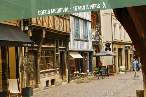 L’hébergement La Maison des Plantes, charmante, atypique et cosy pour 4 personnes avec parking et jardin vous accueille à Rouen, à respectivement 1,5 km et 1,9 km de ces lieux d’intérêt : Hotel de ville de Soteville Station, Rouen et 14-juillet Tramway Station, Rouen. Il met à votre disposition une connexion Wi-Fi gratuite et offre une vue sur le jardin. Cet hébergement est installé à 900 mètres de : Voltaire Station, Rouen. Il comprend un jardin et un parking privé gratuit. Disposant d’une terrasse et offrant une vue sur la ville, cette maison de vacances possède 1 chambre, un salon, une télévision à écran plat, une cuisine équipée avec un réfrigérateur et un lave-vaisselle, ainsi que 1 salle de bains avec une baignoire. Des serviettes et du linge de lit sont à votre disposition. Vous séjournerez à respectivement 3,6 km et 4,1 km de ces lieux d’intérêt : Parc des expositions de Rouen et Cathédrale Notre-Dame de Rouen. L'aéroport le plus proche (Aéroport de Deauville - Normandie) est à 81 km. |