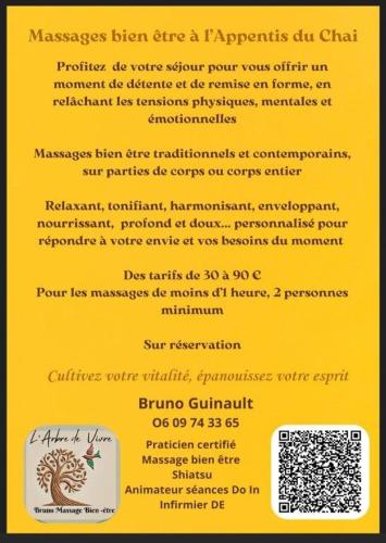 Informations importantes | Les enterrements de vie de célibataire et autres fêtes de ce type sont interdits dans cet établissement. Veuillez informer l'établissement l appentis du chai à l'avance de l'heure à laquelle vous prévoyez d'arriver. Vous pouvez indiquer cette information dans la rubrique « Demandes spéciales » lors de la réservation ou contacter directement l'établissement. Ses coordonnées figurent sur votre confirmation de réservation. Dans le cadre de la pandémie de coronavirus (COVID-19), cet établissement applique actuellement des mesures sanitaires supplémentaires. Un dépôt de garantie d'un montant de EUR 500 est demandé à l'arrivée. Il devra être payé en espèces. Le remboursement devrait être effectué le jour de votre départ. Le dépôt de garantie vous sera entièrement remboursé en espèces, si aucun dommage n'a été constaté par l'établissement. Veuillez noter que l’établissement propose 2 gîtes. Un pour 4 personnes et l'autre pour 2. Ils sont un peu éloignés l’un de l’autre. Le grand gîte comporte la climatisation, une télévision à écran plat, un lave-linge, une bouilloire, un lave-vaisselle ainsi qu’une cuisine. Les 2 gîtes comprennent un espace privé extérieur, mais ne sont pas aménagés de la même manière. Le grand gîte est muni d’un grand salon avec un coin repas et une cuisine ouverte. Les 2 gîtes sont climatisés. Hébergement géré par un particulier |