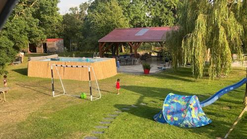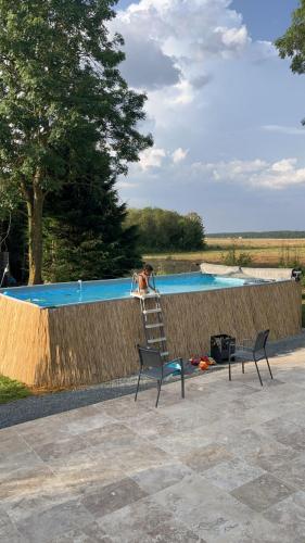 Situé à Rueil-la-Gadelière, l’hébergement la longère aux volets rouges offre une vue sur le jardin et possède une piscine privée ainsi qu’un balcon. Cet hébergement avec climatisation est installé à 17 km de : Golf des Bois-Francs. Vous pourrez profiter d’une connexion Wi-Fi gratuite et d’un parking privé disponible sur place. Cette maison de vacances possède une terrasse, 1 chambre, un salon, ainsi qu’une cuisine bien équipée avec un réfrigérateur et un lave-vaisselle. Des serviettes et du linge de lit sont à disposition. Vous séjournerez à respectivement 31 km et 31 km de ces lieux d’intérêt : Stade Joel Cauchon et Chapelle Saint-Louis. L'aéroport le plus proche (Aéroport de Paris - Orly) est à 113 km. |