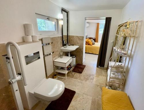 Offrant une vue sur son jardin, Le Viel Sabran est situé à Sabran, à 43 km de la gare centrale d'Avignon et à 45 km du palais des Papes. Vous bénéficierez gratuitement d'un parking privé et d'une connexion Wi-Fi. Ce Bed & Breakfast est accessible aux personnes à mobilité réduite. Les serviettes et le linge de lit sont fournis. L'hébergement dispose de la climatisation, du chauffage et d'une salle de bains privative. Le petit-déjeuner à la carte se compose d'une sélection de plats, notamment de viennoiseries fraîches, de fruits et de jus de fruits. Lors de votre séjour dans ce Bed & Breakfast, vous pourrez pratiquer des activités à Sabran et dans ses environs, telles que des visites à pied. Le Bed & Breakfast possède une aire de pique-nique où vous pourrez passer une journée en plein air. Vous séjournerez à 45 km de la gare TGV d'Avignon et à 48 km du pont d'Arc. L'aéroport de Nîmes-Garons est implanté à 82 km. |