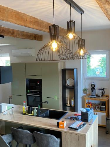 L’hébergement Gîte dans un mas Provençal - L'Oustalet vous accueille à Saint-Andiol, à seulement 13 km de ce lieu d’intérêt : Parc des expositions d'Avignon. Il comprend une piscine extérieure ouverte en saison, une terrasse et une connexion Wi-Fi gratuite. Cette maison de vacances possède une piscine privée, un jardin et un parking privé gratuit. Cette maison de vacances avec climatisation se compose de 2 chambres séparées, d'un salon, d'une cuisine entièrement équipée, et de 1 salle de bains. Des serviettes et du linge de lit moyennant des frais supplémentaires. Vous séjournerez à respectivement 22 km et 22 km de ces lieux d’intérêt : Gare d'Avignon-Centre et Gare TGV d'Avignon. L'aéroport le plus proche (Aéroport de Marseille Provence) est à 59 km. |
