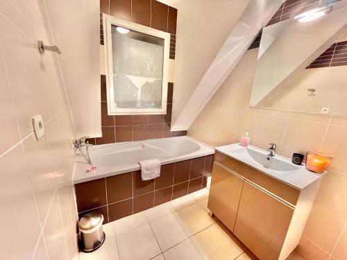 ![]() ![]() ![]() ![]() Cet appartement comprend un salon, une chambre séparée et une salle de bains avec une baignoire. La cuisine entièrement équipée est dotée d’ustensiles, de plaques de cuisson, d’un réfrigérateur et d’un lave-vaisselle. L'appartement dispose d'un plateau/bouilloire, d'un coin salon, d'un coin repas et d'un balcon avec vue sur le jardin. Vous profiterez de 2 lits. |