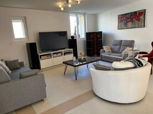 L’hébergement La maison de Charles vous accueille à Saint-Aubin-de-Branne, à respectivement 36 km, 37 km et 37 km de ces lieux d’intérêt : Pont de pierre, Grosse cloche de Bordeaux et Basilique Saint-Michel. Cette maison de vacances comprend un jardin, un barbecue, une connexion Wi-Fi gratuite et un parking privé gratuit. Disposant d’une terrasse et offrant une vue sur le jardin, cette maison de vacances possède 2 chambres, un salon, une télévision à écran plat, une cuisine équipée avec un réfrigérateur et un lave-vaisselle, ainsi que 1 salle de bains avec une douche. Des serviettes et du linge de lit sont mis à votre disposition. Vous séjournerez à respectivement 37 km et 37 km de ces lieux d’intérêt : Musée d'Aquitaine et Place de la Bourse. L'aéroport le plus proche (Aéroport de Bordeaux-Mérignac) est à 54 km. |