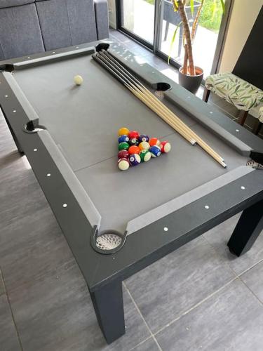 Situé à Saint-Aubin-de-Médoc, l’hébergement Villa moderne avec piscine offre une vue sur le jardin. Il propose une piscine extérieure, un jardin, une terrasse et une connexion Wi-Fi gratuite. Cet hébergement met à votre disposition un billard, une table de ping-pong et un parking privé gratuit. Cette villa comporte 3 chambres, une télévision à écran plat, une console de jeux, la climatisation et un salon. L'hébergement comporte également une cuisine bien équipée avec un réfrigérateur, un lave-vaisselle et un four, ainsi que un sèche-cheveux. L’établissement dispose d’un sauna, d’un bain à remous et d’un hammam. Vous séjournerez à respectivement 17 km et 17 km de ces lieux d’intérêt : CAPC musée d'art contemporain de Bordeaux et Esplanade des Quinconces. L'aéroport le plus proche (Aéroport de Bordeaux-Mérignac) est à 14 km. |