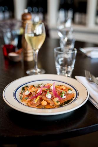 Situé à Saint-Aubin-sur-Mer, cet hôtel en bord de mer dispose d'un restaurant traditionnel et d'un bar-salon avec vue sur la mer. Elle bénéficie d'un accès direct à la plage. Toutes les chambres sont équipées d'une literie de qualité et d'un plateau de bienvenue. Les salles de bains privatives sont pourvues d'une douche à l'italienne ou d'une baignoire et d'un sèche-cheveux. Elles offrent une vue sur le village ou la mer. Chaque matin, vous pourrez déguster un petit-déjeuner buffet composé de produits régionaux en face de la plage. Pour les autres repas, vous pourrez déguster des spécialités de fruits de mer et des plats français traditionnels au restaurant. Saint Aubin Logis Hôtel & Restaurant se trouve sur la plage du débarquement. L'établissement se trouve à 20 km de l'aéroport de Caen-Carpiquet et à 14 km du ferry Ouistreham. Les couples apprécient particulièrement l'emplacement de cet établissement. Ils lui donnent la note de 9,4 pour un séjour de deux. Nous parlons votre langue ! |