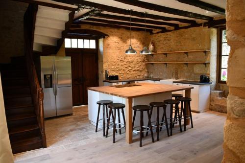L’hébergement Moon River Grande Maison offre une vue sur le cours d’eau, à environ 22 km de ce lieu d’intérêt : Gare de Sarlat-la-Canéda. Il comprend un patio et une machine à café. Cet hébergement offre une vue sur le jardin et comprend un court de tennis ainsi qu’une connexion Wi-Fi gratuite dans l’ensemble de ses locaux. Disposant d’une terrasse et offrant une vue sur la piscine, cette villa possède 6 chambres, un salon, une télévision à écran plat, une cuisine équipée avec un réfrigérateur et un lave-vaisselle, ainsi que 2 salles de bains avec une douche. Des serviettes et du linge de lit sont à votre disposition. Lors de votre séjour, vous pourrez nager dans la piscine extérieure, pratiquer la randonnée ou le vélo, vous détendre dans le jardin ou faire un barbecue. Vous séjournerez à respectivement 39 km et 10 km de ces lieux d’intérêt : Grottes de Lascaux et Golf de Lolivarie. L'aéroport le plus proche (Aéroport Bergerac Dordogne Périgord) est à 54 km. |