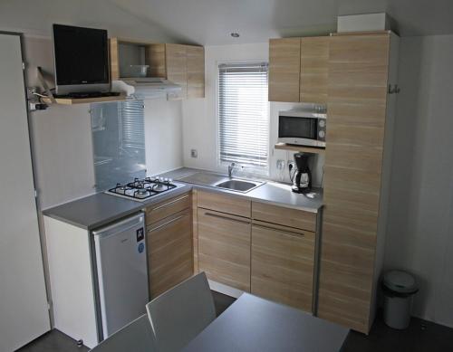 ![]() ![]() ![]() ![]() Ce mobile home climatisé comprend un salon et 2 chambres séparées. Sa salle de bains est pourvue d’une douche. La cuisine entièrement équipée est munie de plaques de cuisson, d’un réfrigérateur, d’un micro-ondes et d’ustensiles. Ce mobile home est doté d’une machine à café, d’une télévision à écran plat et d'une terrasse offrant une vue sur le jardin. Ce logement comporte 3 lits. |