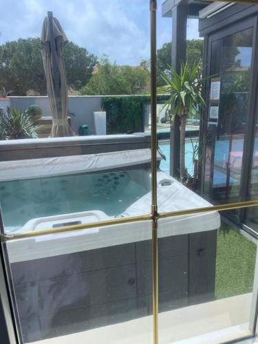 ![]() ![]() ![]() ![]() This luxurious holiday home features a private pool, a hot tub and a spa bath. This air-conditioned holiday home comes with 1 living room, 2 separate bedrooms and 2 bathrooms with a walk-in shower. Guests will find a refrigerator, a dishwasher, kitchenware and an oven in the well-equipped kitchen. The holiday home also includes a barbecue. This holiday home has a washing machine, a tea and coffee maker, a flat-screen TV with streaming services and an outdoor dining area. The unit has 2 beds. |