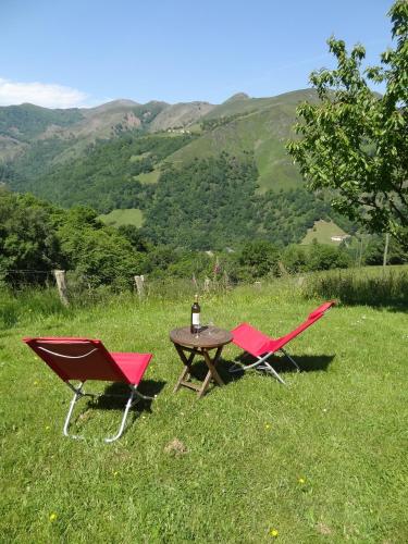 Chambre Double    The double room features a private entrance, a tea and coffee maker, as well as a private bathroom boasting a walk-in shower and a hairdryer. Among the room amenities are a dining area, a wardrobe, parquet floors as well as an outdoor dining area and mountain views. The unit has 1 bed. | ||
