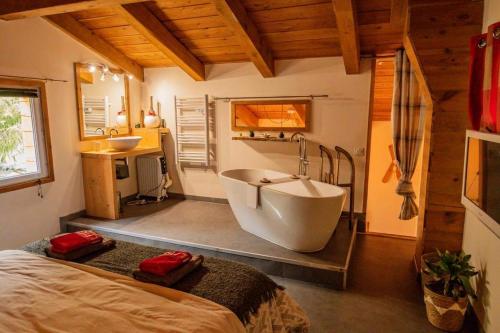 ![]() ![]() ![]() ![]() This chalet comprises 1 living room, 1 separate bedroom and 2 bathrooms with a bath and a shower. Guests can make meals in the kitchen that is equipped with a stovetop, a refrigerator, a dishwasher and kitchenware. Featuring a terrace with garden views, this chalet also provides a washing machine and a flat-screen TV. The unit offers 2 beds. |