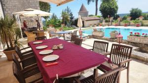 L’établissement Château de Scandaillac se situe à Saint-Eutrope-de-Born, à 41 km de ce lieu d’intérêt : Gare de Bergerac. Il possède une piscine extérieure ouverte en saison, un jardin, un salon commun et un parking privé gratuit. Il propose un bar et est installé à 13 km de : Golf de Villeneuve-sur-Lot. Cet établissement non-fumeurs se trouve à 28 km de : Golf de Barthe. Tous les hébergements proposent une armoire. Vous bénéficierez d'une salle de bains privative dotée d'articles de toilette gratuits. Certains hébergements comprennent également une terrasse et d'autres offrent une vue sur la piscine. Vous profiterez aussi d’un réfrigérateur. Un petit-déjeuner continental est servi sur place. Vous pourrez jouer au billard sur place. Vous séjournerez à respectivement 44 km et 47 km de ces lieux d’intérêt : Golf du Château Les Merles et Golf de Lolivarie. L'aéroport le plus proche (Aéroport Bergerac Dordogne Périgord) est à 36 km. |