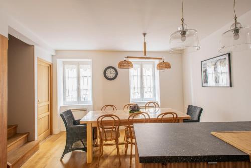 Située à Saint-Gengoux-le-National, un village médiéval sur la route des vins de Bourgogne, cette maison de vacances en pierre est aménagée sur 3 niveaux et dispose d'une terrasse meublée avec des tables, des chaises longues et des chaises. Offrant une vue sur la ville, il se trouve à 47 km de Beaune. Au rez-de-chaussée, vous trouverez une cuisine entièrement équipée avec un coin repas, donnant sur la terrasse orientée au sud. Vous trouverez également une buanderie avec un lave-linge, un sèche-linge et des toilettes. Au premier étage, la maison dispose d'un salon avec télévision, d'une chambre double et d'une salle de bains avec douche à l'italienne et toilettes. Au deuxième étage, vous trouverez 3 autres chambres et des toilettes. La maison dispose d'une cave voûtée avec 6 vélos que vous pourrez utiliser pour découvrir la région. Vous pourrez jouer au tennis sur place et faire du vélo dans les environs. Mâcon se trouve à 37 km de la Maison De Charme En Bourgogne et Chalon-sur-Saône est à 24 km. |