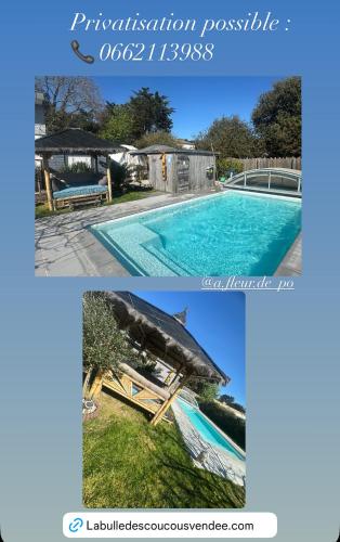 Situé à Saint-Hilaire-de-Riez, l’hébergement La bulle des coucous offre une vue sur la piscine. Il propose une piscine extérieure ouverte en saison, un jardin, une terrasse et une connexion Wi-Fi gratuite. Cet hébergement met à votre disposition une piscine privée et un parking privé gratuit. Des serviettes et du linge de lit sont mis à votre disposition. L’établissement La bulle des coucous dispose d’un bain à remous. Vous séjournerez à respectivement 1,7 km et 12 km de ces lieux d’intérêt : Plage de Riez et Casino de Saint-Jean-de-Monts. L'aéroport le plus proche (Aéroport de Nantes Atlantique) est à 66 km. |