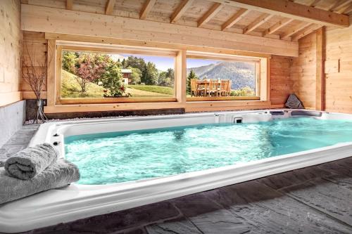 Situé à Saint-Jean-de-Sixt, l’hébergement Chalet Flocon Magique - OVO Network possède une piscine privée et une connexion Wi-Fi gratuite. Ce chalet possède un parking privé gratuit et se trouve dans une région où vous pourrez pratiquer des activités telles que le ski et le ping-pong. Ce chalet comporte 5 chambres, 5 salles de bains, du linge de lit, des serviettes, une télévision avec les chaînes du satellite, un coin repas, une cuisine entièrement équipée et une terrasse offrant une vue sur la montagne. Cet établissement 5 étoiles dispose d’un sauna. Sur place, vous pourrez profiter d’une piscine intérieure et d’un jardin. Vous séjournerez à respectivement 28 km et 48 km de ces lieux d’intérêt : Rochexpo et Jet d'eau de Genève. |