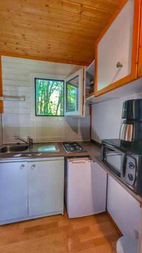 ![]() Ce mobile home comprend un coin salon, des plaques de cuisson et des ustensiles de cuisine. Veuillez noter que les serviettes de toilette et le linge de lit ne sont pas mis à votre disposition. Vous pourrez apporter les vôtres ou louer un assortiment complet de linge de maison auprès de la réception du camping, moyennant des frais supplémentaires de 15 EUR par assortiment. |