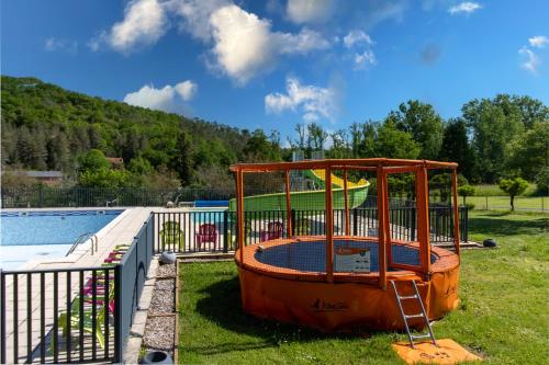 L’hébergement Mobilhome 4 personnes climatisé se trouve à environ 17 km de ce lieu d’intérêt : Gare de Sarlat-la-Canéda. Il dispose d’une piscine extérieure et d’une connexion Wi-Fi gratuite. Cette maison de vacances comprend un parking privé gratuit et se trouve dans une région où vous pourrez pratiquer des activités telles que la randonnée, le vélo et le ping-pong. Cette maison de vacances avec climatisation se compose de 2 chambres séparées, d'une cuisine entièrement équipée avec un réfrigérateur et un micro-ondes, ainsi que de 1 salle de bains. Une télévision est disponible. L’établissement propose une aire de jeux pour enfants. Vous séjournerez à respectivement 48 km et 48 km de ces lieux d’intérêt : Grotte des Merveilles et La Forêt des Singes. L'aéroport le plus proche (Aéroport Brive Vallée de la Dordogne) est à 57 km. |