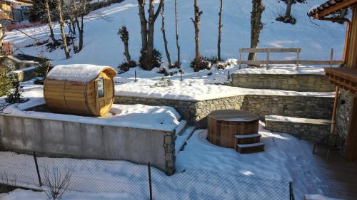 L’hébergement Les Chalets de la Source 1 - Luxe - Skis aux pieds - 10 personnes offre une vue sur la montagne, à environ 47 km de ce lieu d’intérêt : Halle Olympique d'Albertville. Il propose un balcon et une machine à café. Ce chalet comprend un parking privé gratuit, une cuisine commune et une connexion Wi-Fi gratuite. Bénéficiant d’une terrasse et offrant une vue sur la ville, ce chalet comprend 4 chambres, un salon, une télévision à écran plat par satellite, une cuisine équipée, ainsi que 4 salles de bains avec une douche et un bain à remous. Cet hébergement met à votre disposition des serviettes et du linge de lit. Un petit-déjeuner à la carte est servi sur place. Vous pourrez profiter de diverses installations de bien-être, notamment d’un sauna et d’un bain à remous. Après une journée de randonnée, de ski ou de pêche, vous pourrez vous détendre dans le jardin ou dans le salon commun. Vous séjournerez à respectivement 18 km et 21 km de ces lieux d’intérêt : Casino des 3 Vallées Brides les Bains et Gare de Moûtiers-Salins-Brides-les-Bains. L’établissement se situe à 105 km de l’aéroport le plus proche (Aéroport de Chambéry - Savoie) et propose un service de navette aéroport payant. |