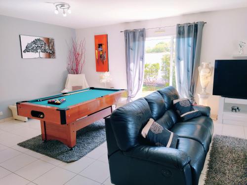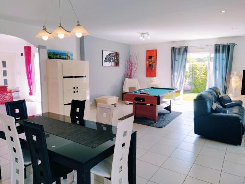 Situé à Saint-Martin-de-Seignanx, l’hébergement Villa la Palmeraie offre une vue sur le jardin. Il comprend une piscine extérieure ouverte en saison et une connexion Wi-Fi gratuite. Cette villa comprend une piscine privée, un jardin et un parking privé gratuit. Disposant d’une terrasse et offrant une vue sur la piscine, cette villa possède 4 chambres, un salon, une télévision à écran plat, une cuisine équipée avec un réfrigérateur et un lave-vaisselle, ainsi que 3 salles de bains avec une douche. Des serviettes et du linge de lit sont à votre disposition. Vous séjournerez à respectivement 28 km et 37 km de ces lieux d’intérêt : Gare de Biarritz La Négresse et Église Saint-Jean-Baptiste. L'aéroport le plus proche (Aéroport de Biarritz-Pays basque) est à 23 km. |