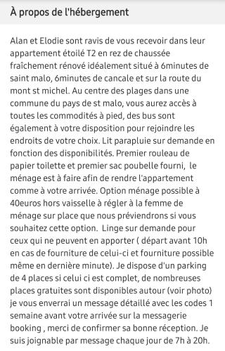Informations importantes | Les enterrements de vie de célibataire et autres fêtes de ce type sont interdits dans cet établissement. Veuillez informer l'établissement Le Babord T2 étoilé à l'avance de l'heure à laquelle vous prévoyez d'arriver. Vous pouvez indiquer cette information dans la rubrique « Demandes spéciales » lors de la réservation ou contacter directement l'établissement. Ses coordonnées figurent sur votre confirmation de réservation. Si vous causez des dommages dans l'hébergement pendant votre séjour, il se peut que vous deviez payer jusqu'à EUR 500 après votre départ, conformément aux conditions relatives au dépôt de garantie de cet hébergement. Hébergement géré par un particulier |