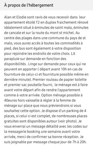 Informations importantes | Les enterrements de vie de célibataire et autres fêtes de ce type sont interdits dans cet établissement. Veuillez informer l'établissement Le Duplex t2 étoilé à l'avance de l'heure à laquelle vous prévoyez d'arriver. Vous pouvez indiquer cette information dans la rubrique « Demandes spéciales » lors de la réservation ou contacter directement l'établissement. Ses coordonnées figurent sur votre confirmation de réservation. Dans le cadre de la pandémie de coronavirus (COVID-19), cet établissement applique actuellement des mesures sanitaires supplémentaires. Si vous causez des dommages dans l'hébergement pendant votre séjour, il se peut que vous deviez payer jusqu'à EUR 500 après votre départ, conformément aux conditions relatives au dépôt de garantie de cet hébergement. Hébergement géré par un particulier |