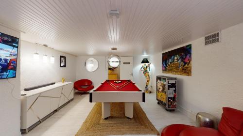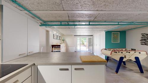 Situé à Saint-Pair-sur-Mer, l’hébergement Villa Amare Granville offre une vue sur la mer. Il propose une piscine extérieure, une terrasse, des équipements de sports nautiques et une connexion Wi-Fi gratuite. Cette villa comprend un parking privé gratuit et se trouve dans une région où vous pourrez pratiquer des activités telles que la randonnée, la planche à voile et le billard. Cette villa avec climatisation se compose de 6 chambres, d'un salon, d'une cuisine entièrement équipée avec un réfrigérateur et une machine à café, ainsi que de 6 salles de bains avec une douche et un sèche-cheveux. Cet hébergement met à votre disposition des serviettes et du linge de lit. Cet établissement dispose d’une aire de jeux pour enfants. Vous pourrez jouer au ping-pong sur place, et pratiquer la plongée sous-marine et la pêche dans les environs. Vous séjournerez à respectivement 600 mètres et 8,7 km de ces lieux d’intérêt : Plage de Jullouville et Gare de Granville. |