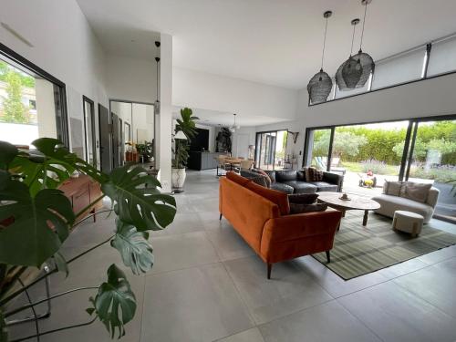 | Situé à Saint-Palais-sur-Mer, l’hébergement Villa d'architecte Moon offre une vue sur le jardin. Il possède une piscine extérieure ouverte en saison et une connexion Wi-Fi gratuite. Cette villa comprend une piscine privée, un jardin et un parking privé gratuit. Disposant d’une terrasse avec vue sur la piscine, l'hébergement comporte également une télévision à écran plat par satellite, une cuisine bien équipée avec un réfrigérateur, un lave-vaisselle et un four, ainsi que 3 salles de bains avec une douche et un sèche-cheveux. Vous séjournerez à respectivement 2,5 km et 46 km de ces lieux d’intérêt : Plage du Bureau et Gare de Saintes. L'aéroport le plus proche (Aéroport de La Rochelle - Île de Ré) est à 81 km. |