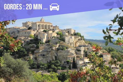 | Situé à Saint-Saturnin-lès-Apt, l’hébergement Villa Piscine Chauffée, 5min du village et Climatisation comprend une connexion Wi-Fi gratuite, la climatisation, un service de prêt de vélos et l’accès à un jardin doté d’une piscine extérieure ouverte en saison. Cette maison de vacances possède un parking privé gratuit et une réception ouverte 24h/24. Cette maison de vacances comporte 3 chambres, 2 salles de bains, du linge de lit, des serviettes, une télévision à écran plat, une cuisine entièrement équipée et une terrasse offrant une vue sur la montagne. Vous pourrez profiter d'une aire de jeux pour enfants. Vous séjournerez à respectivement 45 km et 11 km de ces lieux d’intérêt : Parc des expositions d'Avignon et Sentier des Ocres. |
