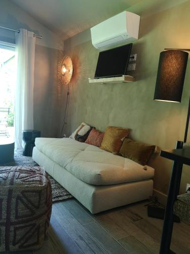 ![]() ![]() Guests will find a stovetop, a refrigerator, kitchenware and a microwave in the well-fitted kitchen. The studio also features a barbecue. The studio offers air conditioning, a washing machine, a terrace with garden views as well as a private bathroom boasting a shower. The unit has 2 beds. |
