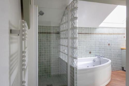 ![]() ![]() ![]() ![]() ![]() ![]() ![]() Guests will have a special experience as this apartment provides a hot tub and a fireplace. Featuring a private entrance, this air-conditioned apartment is comprised of 1 living room, 3 separate bedrooms and 1 bathroom with a walk-in shower and a bath. Guests can make meals in the kitchen that comes with a stovetop, a refrigerator, a dishwasher and kitchenware. The spacious apartment offers a washing machine, soundproof walls, a tea and coffee maker, a flat-screen TV with streaming services, as well as garden views. The unit offers 4 beds. |