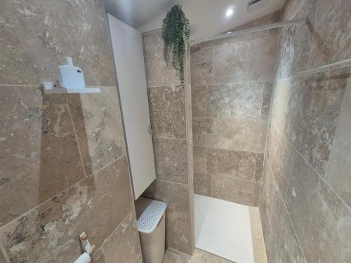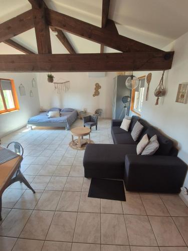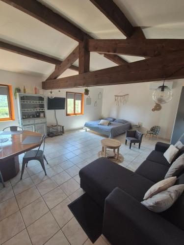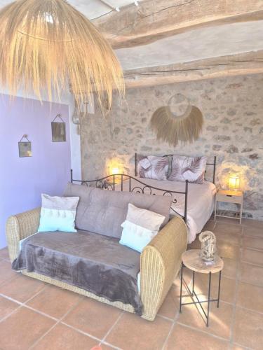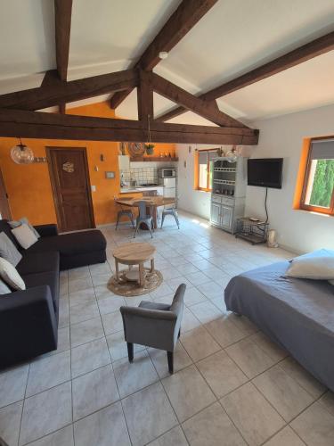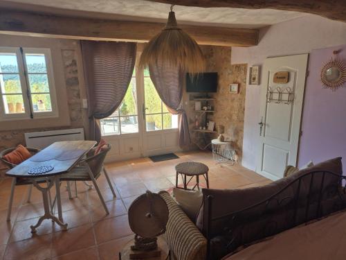 ![]() ![]() Single-storey exposed stone studio with a surface area of 25m2 with lots of charm and a private terrace . Composed of a fully equipped open kitchen opening onto the living space, a double bed, an independent shower room (walk-in shower) with toilet. Breathtaking view of the property and the valley. Available to tenants: independent terrace, private garden area, bowling alley and swimming pool access during opening periods. It has a large south-facing terrace as well as a breathtaking view. This studio is located adjacent to the main house of the property and has its own independent access. Calm assured. |