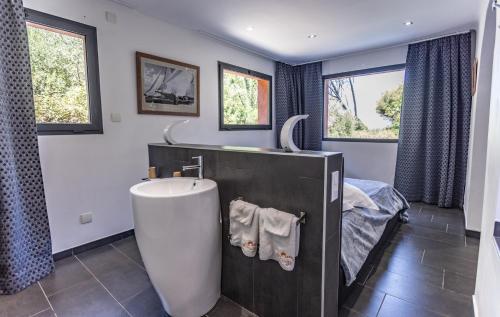 Située à Sanary-sur-Mer, la chambre d'hôtes Villa Hippocampe est installée dans un jardin de 1 hectare. Vous profiterez d'une plage privée, d'un accès direct à la mer Méditerranée, d'une piscine intérieure chauffée à 29 degrés et d'un sauna. Le stationnement privé est gratuit. Chaque chambre est dotée de la climatisation, d'une télévision, d'un coin salon, d'une machine à café, d'une terrasse privée, ainsi que d'une vue sur les jardins ou la mer. La Villa Hippocampe bénéficie d'une connexion Wi-Fi gratuite. Le petit-déjeuner continental est compris dans le tarif. Moyennant des frais supplémentaires et sur réservation, vous pourrez par ailleurs réserver des massages sur place ou louer le bateau de la Villa Hippocampe. Du vin rosé fait maison est également en vente. Vous séjournerez à 13 km de Toulon, à 60 km de Marseille, à 47 km des îles de Porquerolles et à 37 km de l'aéroport de Toulon-Hyères. |