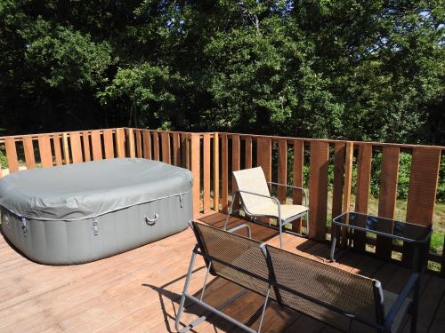 ![]() ![]() ![]() ![]() This tent's special features are the hot tub and the spa bath. Guests will find a stovetop, a refrigerator, kitchenware and an electric kettle in the well-fitted kitchen. The tent also offers a barbecue. The tent provides a private entrance, executive lounge access, a terrace with garden views as well as a shared bathroom featuring a shower. The unit offers 3 beds. |