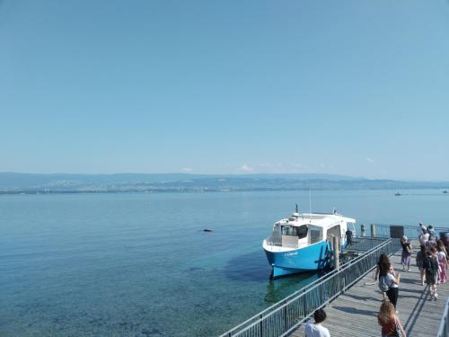 L’hébergement Le Nid du Chat Noir - Gîte La Maison Alvéole se situe à Sciez, à respectivement 23 km et 25 km de ces lieux d’intérêt : Jet d'eau de Genève et Gare de Cornavin. Il propose des équipements tels qu’une connexion Wi-Fi gratuite et une télévision à écran plat. Cet hébergement est installé à 20 km de : Evian Resort Golf Club. Il possède une terrasse et un parking privé gratuit. Cet appartement se compose de 1 chambre, d'un salon, d'une cuisine entièrement équipée avec un réfrigérateur et une machine à café, ainsi que de 1 salle de bains avec une baignoire et un sèche-cheveux. Des serviettes et du linge de lit sont mis à votre disposition. Vous séjournerez à respectivement 25 km et 27 km de ces lieux d’intérêt : Cathédrale Saint-Pierre de Genève et Office des Nations unies à Genève. |