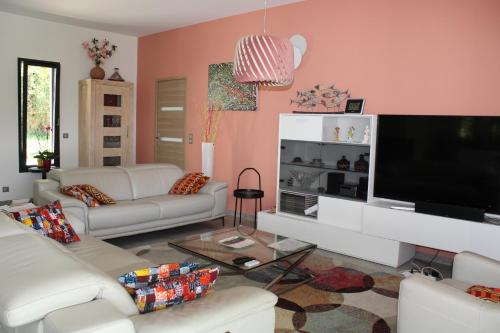Villa avec Piscine Privée        This villa provides a private pool. Guests can make meals in the kitchen that has a refrigerator, a dishwasher, kitchenware and an oven. The air-conditioned villa offers a TV with satellite channels, a washing machine, a tea and coffee maker, a barbecue as well as garden views. The unit has 3 beds. | ||