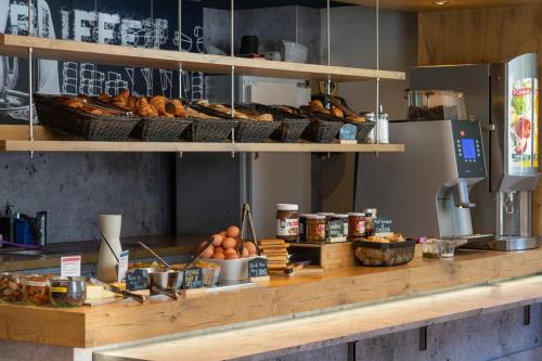 Situé sur la route des vins d'Alsace, l'ibis Budget Sélestat se trouve à Sélestat. Une connexion Wi-Fi est disponible gratuitement. Vous pourrez vous détendre sur la terrasse meublée et la sortie de l'autoroute A35 est à 1,9 km. Les chambres climatisées sont équipées d'une télévision à écran plat, d'un bureau et d'une salle de bains privative avec articles de toilette gratuits. Le petit-déjeuner est servi chaque matin dans le salon commun moyennant des frais supplémentaires. Un distributeur automatique est également à votre disposition. Un parking privé est disponible gratuitement sur place. Colmar se trouve à 17 km. L'hôtel se trouve à seulement 17 km de la frontière allemande. Nous offrons un petit restaurant à la réception La réception est ouverte 24h/24 et 7j/7. |