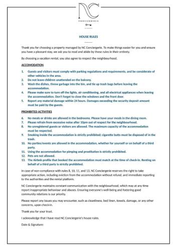 | Informations importantes | Les enterrements de vie de célibataire et autres fêtes de ce type sont interdits dans cet établissement. Si vous causez des dommages dans l'hébergement pendant votre séjour, il se peut que vous deviez payer jusqu'à EUR 1000 après votre départ, conformément aux conditions relatives au dépôt de garantie de cet hébergement. Hébergement géré par un particulier |